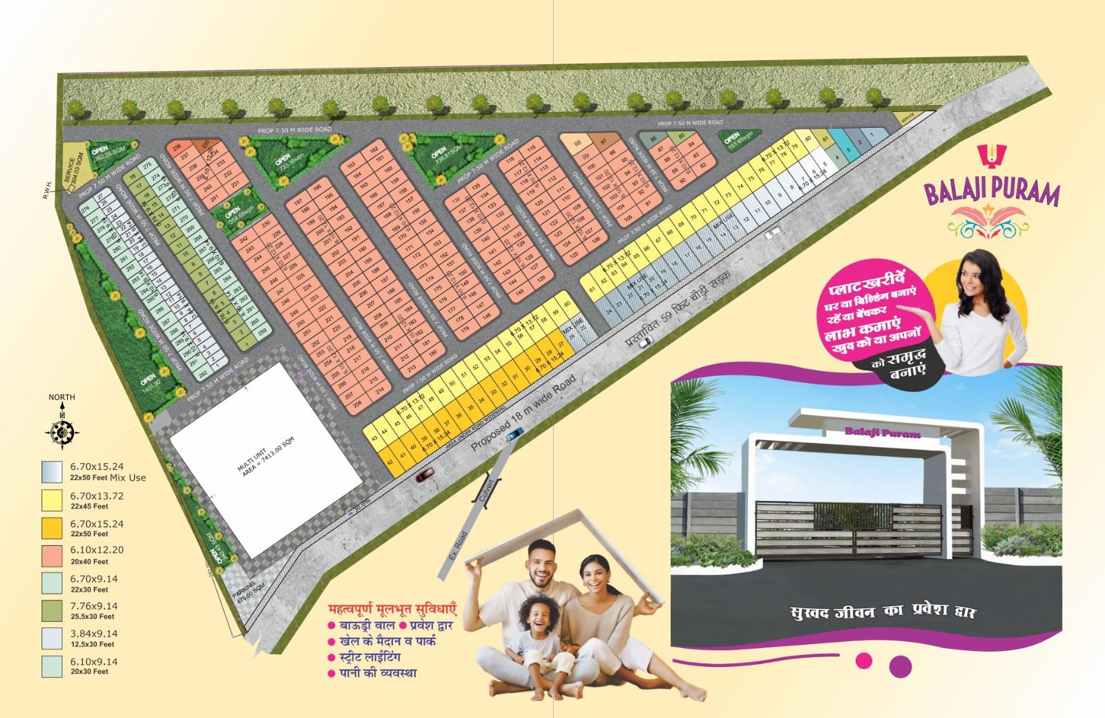 An upcoming residential and commercial township with 347 thoughtfully planned units, located in front of Sheetal Town on Kolar Road, Mandideep.Balajipuram is designed as a vibrant, self-sustained community offering premium amenities, modern infrastructure, and a contemporary living experience.